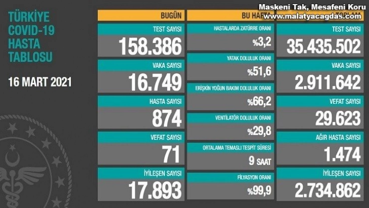 Sağlık Bakanlığı, son 24 saatte 71 kişinin korona virüsten hayatını kaybettiğini, 16 bin 749 yeni vaka sayısının olduğu açıkladı.