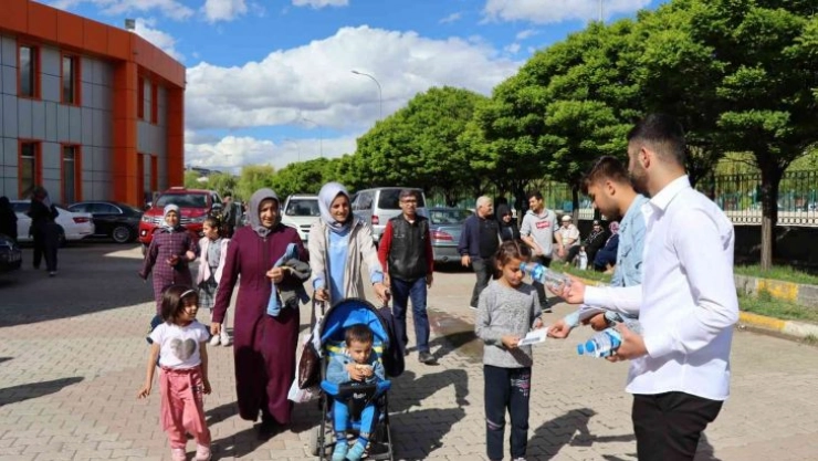 Oltu Beşeri ve Sosyal Bilimler Fakültesi İşletme Bölümü Öğrencileri tarafından su kıtlığına dikkat çekmek için broşür ve su dağıttılar.