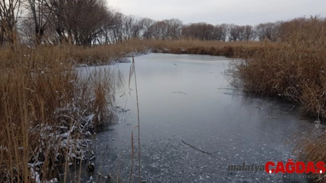 Sultan Sazlığı'ndaki göl soğuk havada buz tuttu