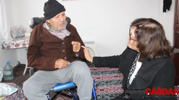 Sungurlu Belediye Başkan Yardımcısı Sakine Sarıyüce, Bahçelievler Mahallesi’nde oturan Kayar ailesini ziyaret ederek tekerlekli sandalyeyi aileye teslim etti.