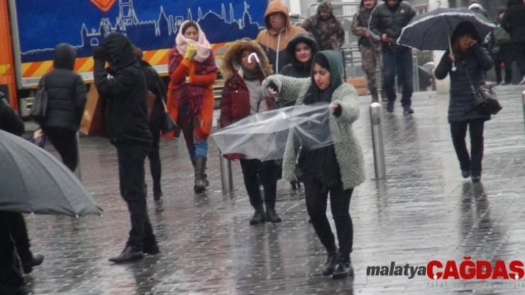 İstanbul'da sabah saatlerinden itibaren etkili olan yağmur ve şiddetli rüzgar vatandaşlara zor anlar yaşattı. Beyoğlu İstiklal Caddesi'nde vatandaşların yağmurdan korunmak için kullandığı şemsiyeler, şiddetli rüzgarda kırıldı.