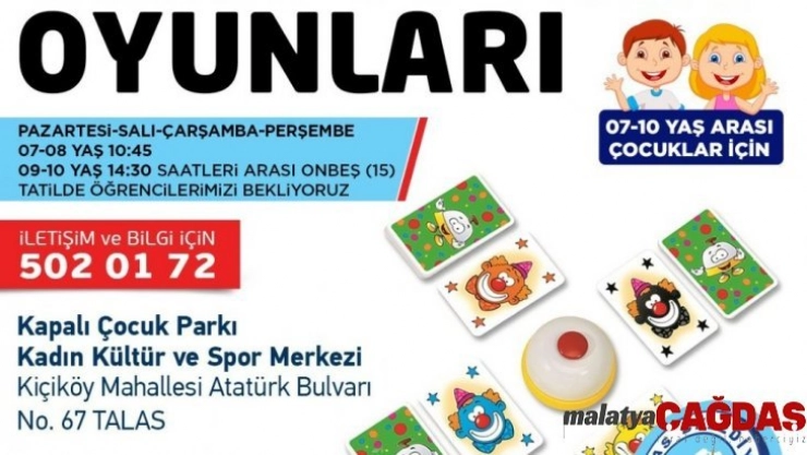 Yarıyıl tatilinin yaklaşmasıyla birlikte öğrencilerin tatili verimli geçirmeleri için Talas Belediyesi tarafından etkinlik programı oluşturuldu. Eğitici oyunlardan oluşan program pazartesi, salı, çarşamba ve perşembe günleri düzenlenecek. “Zekâ ve Akıl Oyunları” başlığıyla gerçekleşecek programlara 7-10 yaş arasında çocuklar alınacak. Kapalı Çocuk Parkı Kadın Kültür Merkezi’nde başlatılacak eğitim programı, sabah ve öğleden sonra olmak üzere iki grup olarak yapılacak.