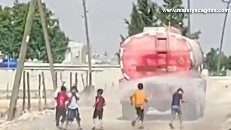 Şanlıurfa’nın Hilvan ilçesinde sıcaktan bunalan çocuklar su tankerinin fışkırttığı suyla serinlemeye çalıştı. O anlar bir vatandaş tarafından cep telefonu kamerasıyla kaydedildi.