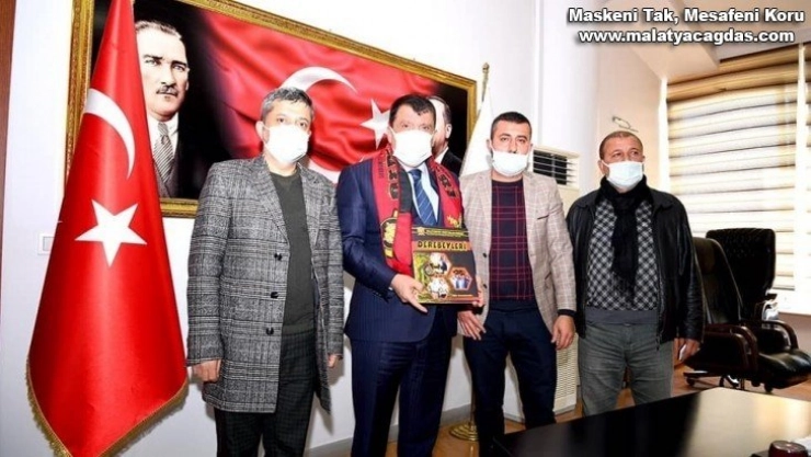Malatyaspor'un taraftar derneği Derebeyleri, Malatya Büyükşehir Belediye Başkanı Selahattin Gürkan'ı ziyaret ederek derneğin çıkardığı derginin ilk sayısını hediye ettiler.