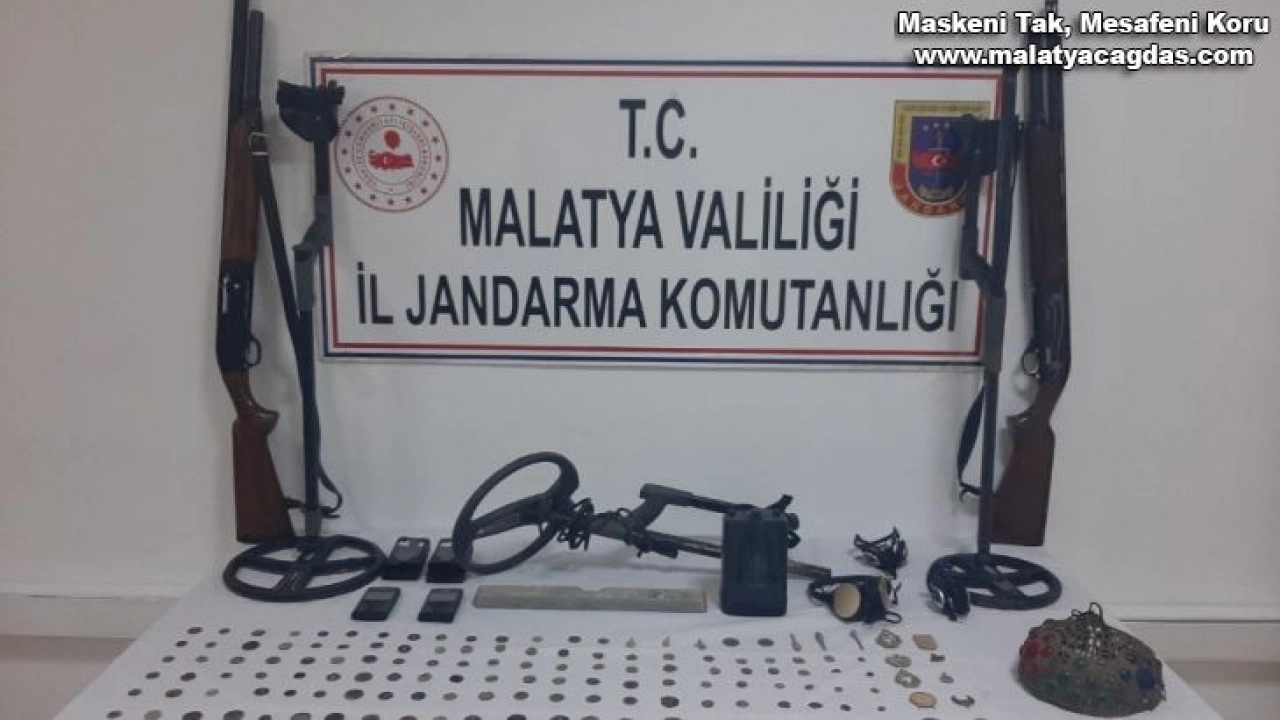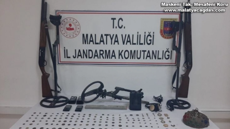 Malatya'da tarihi sikkeler ve silahlar ele geçirilirken, olayla ilgili 3 zanlı yakalandı.