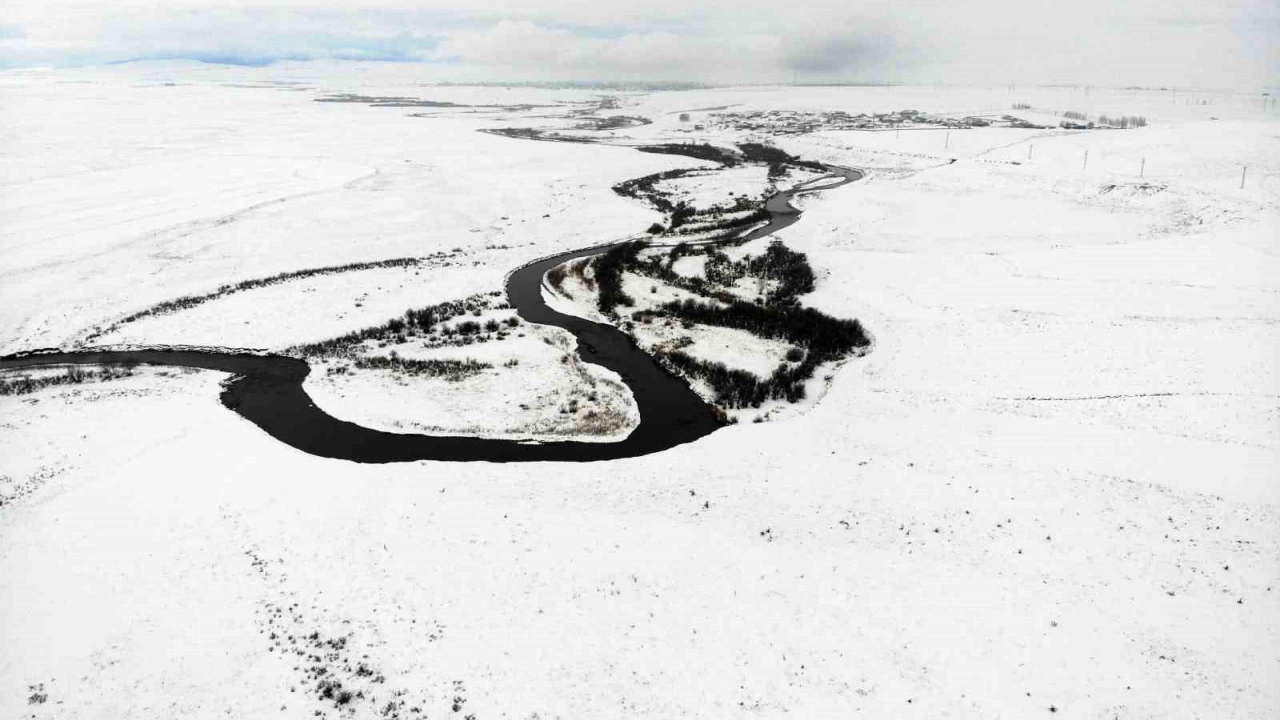Kars'ta etkili olan yoğun kar yağışı, hayatı zorlaştırsa da doğanın sunduğu eşsiz manzaralarla adeta bir açık hava sergisine dönüştü. Kentin uçsuz bucaksız tarım arazileri ve kıvrımlı menderesleri, karın beyaz örtüsüyle birleşince ortaya kartpostallık görüntüler çıktı. Kar altında kalan tarım arazileri ve menderesler dron ile havadan görüntülendi.