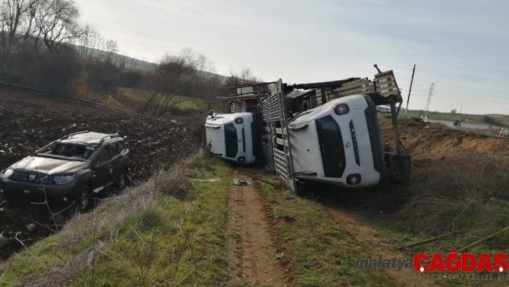 Hamzabeyli Sınır Kapısı istikametinden şehir merkezine seyir halinde olan Georgi İvanov’un kullandığı P 6339 KM plakalı TIR’ın dorsesin de bulunan otomobiller Lalapaşa kavşağında tarlaya devrildi.