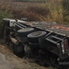 Mersin'in Tarsus ilçesinde yoldan çıkan kamyon devrildi.