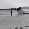 Taşkında yolunu şaşıran otobüs şoförü tarlada mahsur kaldı
