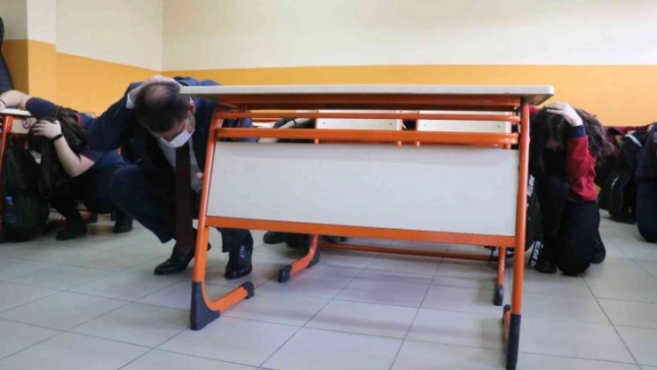 Sivas'ta düzenlenen Deprem Anı ve Acil Durumlar Tahliye Tatbikatı gerçeğini aratmazken, Vali Salih Ayhan öğrencilerle birlikte çök-kapan-tutun uygulamasını yaptı.