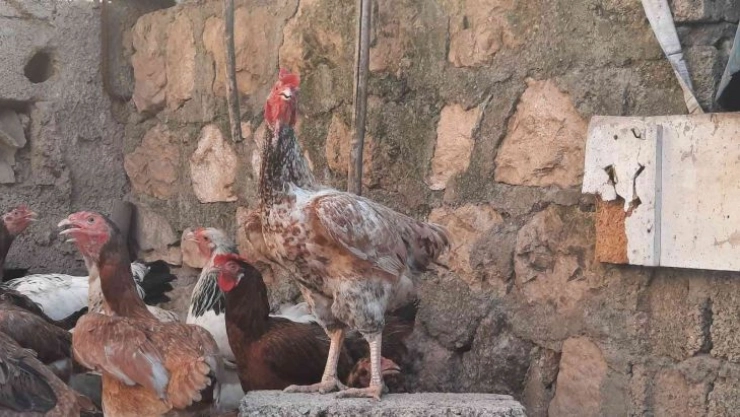 Mardin'in Mazıdağı ilçesinde kümeste barınan bir tavuğun horoz gibi ötmesi, görenleri şaşkına çeviriyor.