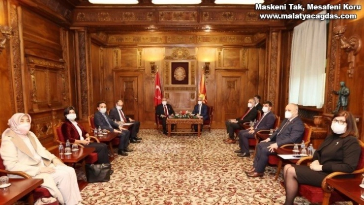 Resmi ziyaretinde Meclis Başkanı Şentop’a Kültür ve Turizm Bakan Yardımcısı Nadir Alpaslan, AK Parti Grup Başkanvekili Özlem Zengin, TBMM Türkiye-Kuzey Makedonya Parlamentolar Arası Dostluk Grubu Başkanı ve AK Parti Bursa Milletvekili Ahmet Kılıç, AK Parti Kütahya Milletvekili İshak Gazel, CHP İstanbul Milletvekili Sibel Özdemir, MHP İzmir Milletvekili Hasan Kalyoncu ile İYİ Parti Denizli Milletvekili Yasin Öztürk eşlik ediyor.