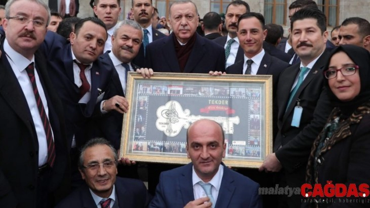 - TEKDER'den Cumhurbaşkanı Erdoğan'a altın anahtar işlemeli tablo