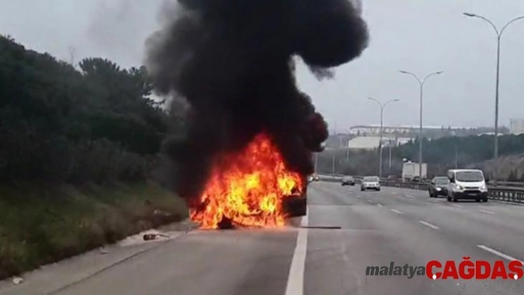 TEM'de seyir halindeki otomobil, alev alev yandı