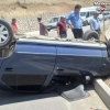 Ters dönen otomobilden burnu kanamadan çıktı