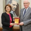 Başkan Kurt’un makamında gerçekleşen ziyarete Türk Eğitim Vakfı Eskişehir Şube Başkanı Tuğba Damarsoy katıldı. Odunpazarı Belediyesinin kendilerine her zaman destek verdiğini belirten Damarsoy, Başkan Kurt’a TEV’e verdiği destek için teşekkür etti. Başkan Kurt’a TEV’in yeni projelerini anlatan Damarsoy, “TEV’in kıymetli bağışçısı Safiye Ayla’yı anma etkinliğinde Odunpazarı Belediyesi çok önemli katkılarda bulundu. Katkılarından dolayı Türk Eğitim Vakfı ailesi olarak Odunpazarı Belediye Başkanı Kazım Kurt’a teşekkür ediyoruz” diyerek, Başkan Kurt’a teşekkür plaketi takdim etti.