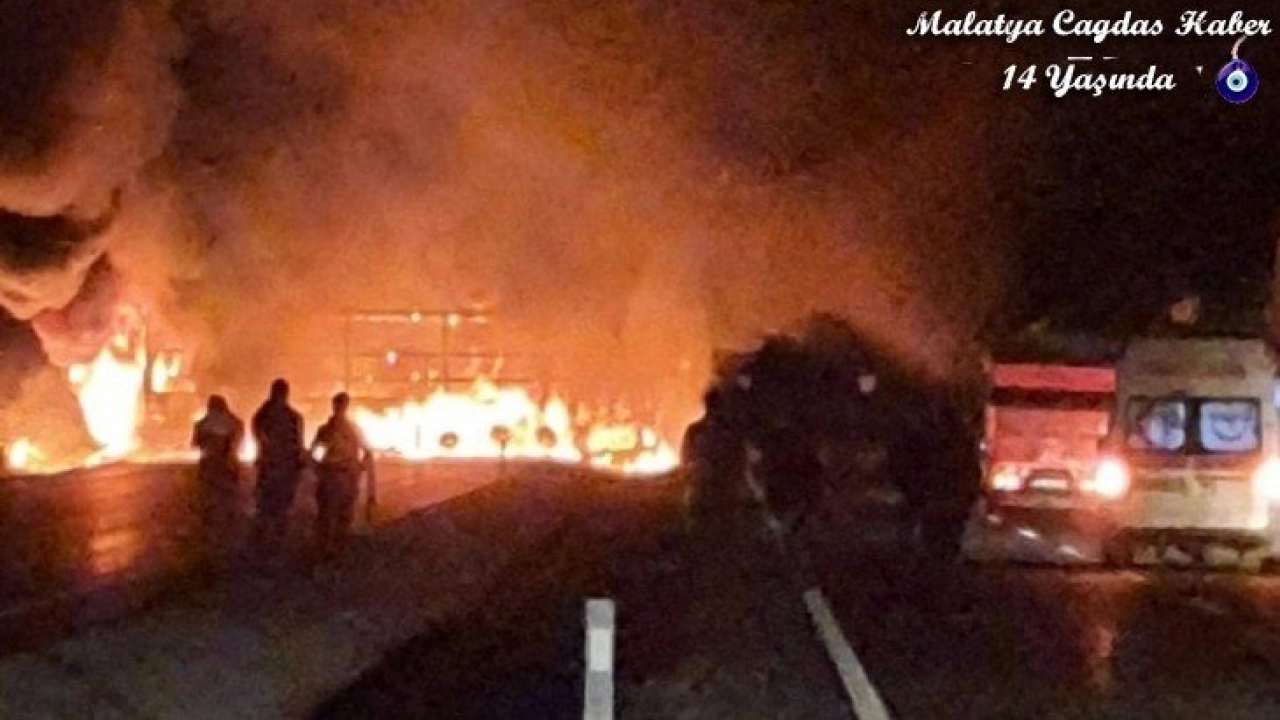 Kütahya-Gediz karayolunda kamyonete arkadan çarpan tır alev alev yandı. Kazada tır şoförü yaralandı.
