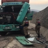 Malatya'nın Doğanşehir ilçesinde istinat duvarına çarpan tırın sürücüsü yaralandı.