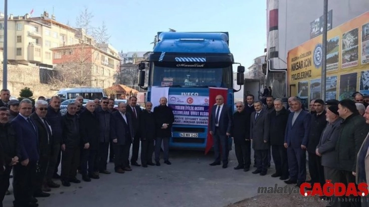 Niksar ilçesinden su yüklü tır ile Turhal ilçesinden kuru soğan yüklü kamyon, İdlib’e ulaştırılmak üzere Hatay’ın Reyhanlı ilçesine doğru yola çıktı.