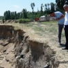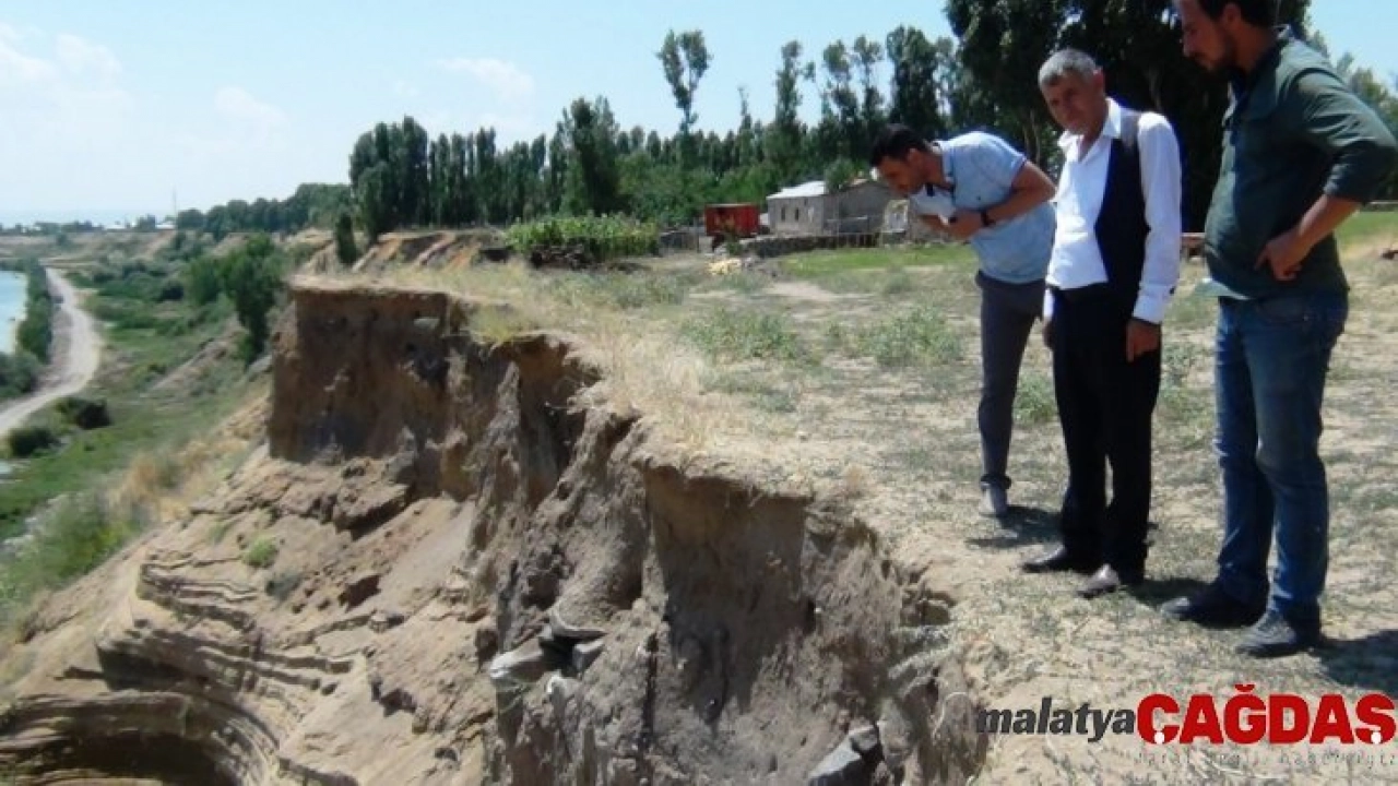 Van'ın Erciş ilçesinde toprak kayması sonucu tarihi mezarlık gün yüzüne çıktı.