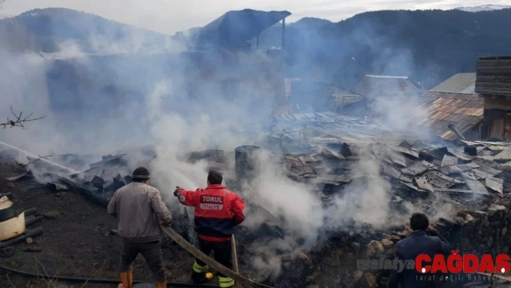Gümüşhane’nin Torul ilçesinde elektrik kontağından çıkan yangında bir ev, bir ahır ve bir samanlık küle döndü.
