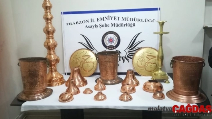 Trabzon'da bir çok camiden tarihi eser çalan şahıslar çaldıkları eserlerle birlikte yakalandı.