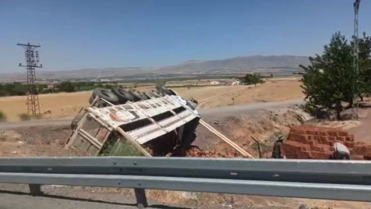 Elazığ’da tuğla yüklü kamyonun devrildiği kazada, sürücüsü hafif yaralandı.
