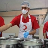 Türk Kızılay Elazığ Şubesi tarafından kurulan 12 bin kişi kapasiteli aşevinde, şimdilik 200 ihtiyaç sahibine her gün sıcak yemek ulaştırılıyor.