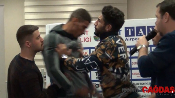 Tokat'ta düzenlenecek kick boks müsabakaları öncesinde yapılan yüzleşme töreninde Türk ve İngiliz rakipler arasında gergin anlar yaşandı. Arbede organizasyon görevlilerinin araya girmesiyle yatıştı.