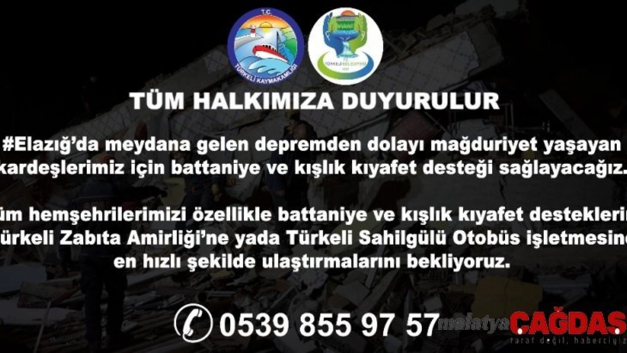 "Elazığ’da meydana gelen depremden dolayı mağduriyet yaşayan kardeşlerimiz için battaniye ve kışlık kıyafet desteği sağlayacağız. Tüm hemşehrilerimizi özellikle battaniye ve kışlık kıyafet desteklerini Türkeli Zabıta Amirliğine en hızlı şekilde ulaştırmalarını bekliyoruz" denildi.