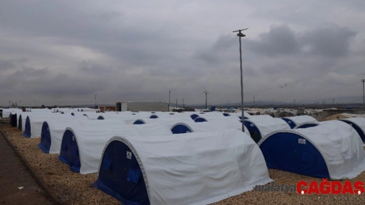 Suriye’nin İdlib kentinden bombardıman nedeniyle kaçarak Türkiye sınırı yakınındaki bölgelere göç eden 135 aile için çadır kuruldu.