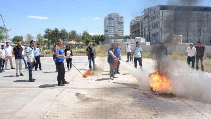 Daha sonra belediye hizmet binası önünde personele, büyük ve küçük çaplı yangın durumunda yapılması gerekenler ile yangın çeşitleri, yangın söndürme teknikleri ve söndürücüler hakkında bilgi veren AFAD Van İl Müdürlüğü personelleri Turgut Kanan, Atilla Uzun ve Volkan Atacan, yakılan ateşi ilk önce kendileri yangın söndürme tüpleri ile müdahale ederek söndürdüler. Ardında yakılan ateş ise belediye personelleri tarafından söndürüldü.