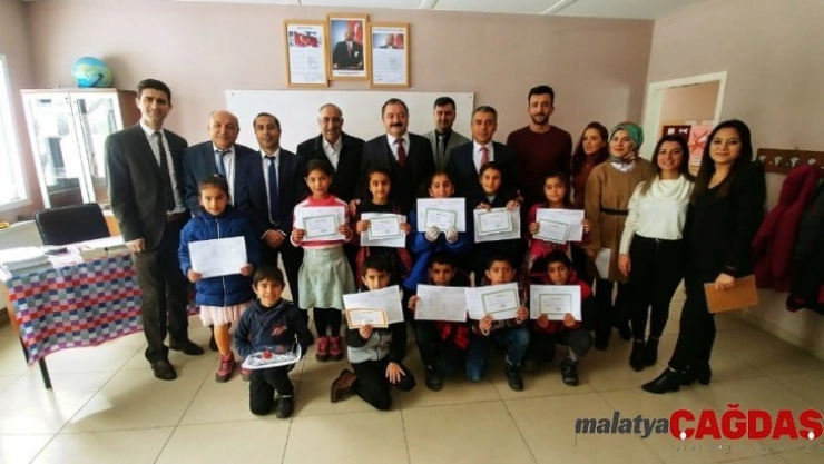 Konuşmanın ardından Tuşba İlçe Milli Eğitim Müdürü Muhlis Ceylani ve katılımcılar, öğrencilere karnelerini verdi.