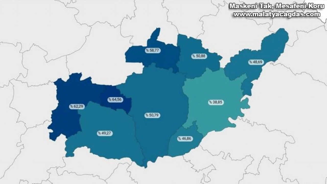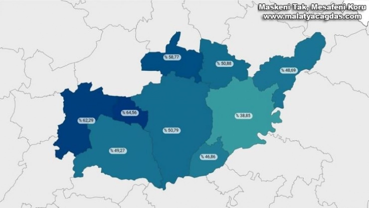 Tut ilçesi aşılama oranında yüzde 64.56 ile birinci olurken, Gölbaşı ilçesi yüzde 62,29 ile ikinci, Çelikhan ilçesi ise yüzde 58,77 ili üçüncü oldu. Sincik ilçesi yüzde 50.88, Adıyaman merkez yüzde 50.79, Besni ilçesi yüzde 49.27, Gerger ilçesi yüzde 48.69, Samsat ilçesi yüzde 46.86, Kahta ilçesi ise yüzde 38.85 oranında aşılandı.