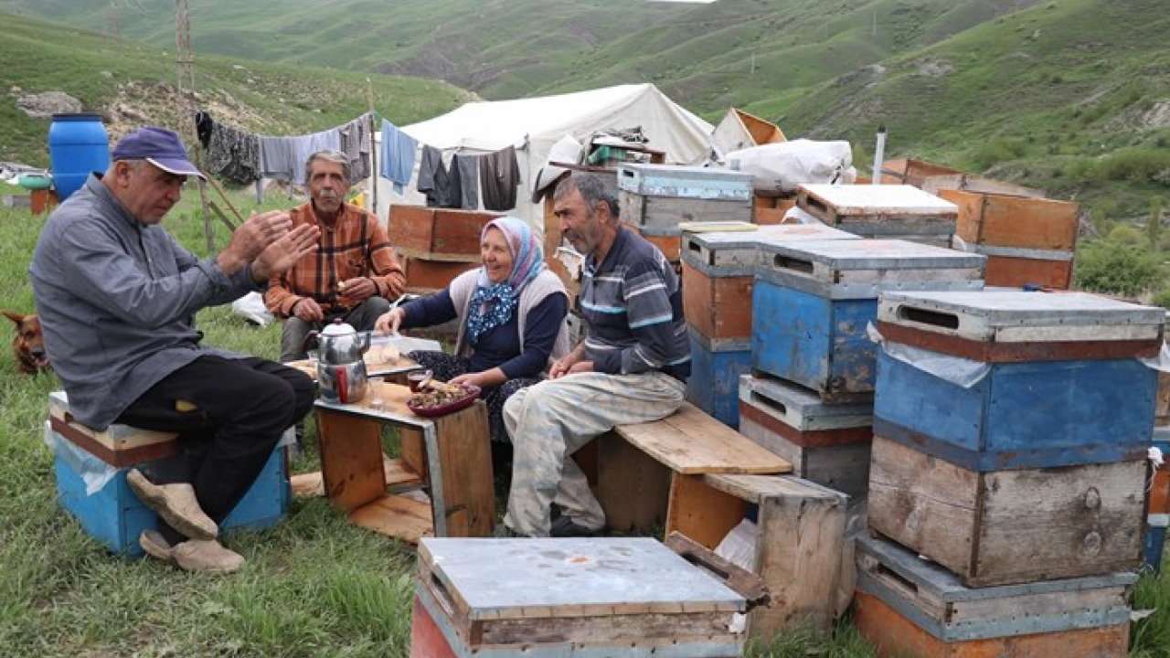 Ordulu 70 yaşındaki göçer arıcı Ali Karaman, eşi ve 2 kardeşiyle Ağrı'nın zengin florasına sahip dağlarında kaliteli bal üretmek için gece gündüz demeden çalışıyor.