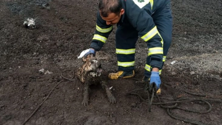Adıyaman eski çöplük alanında bulunan başı boş köpeklerler, alana dökülen atık maddenin içine girince mahsur kaldı. Balçık halindeki atığa batan ve geri çıkamayan köpeklerin sesini duyan duyarlı bir vatandaş durumu itfaiye ekiplerine bildirdi. Olay yerine gelen itfaiye ekipleri, balçığa girerek köpekleri mahsur kaldıkları yerden çıkarttı.