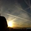 Uçak izleri ve güneşin batışı görsel şölen oluşturdu