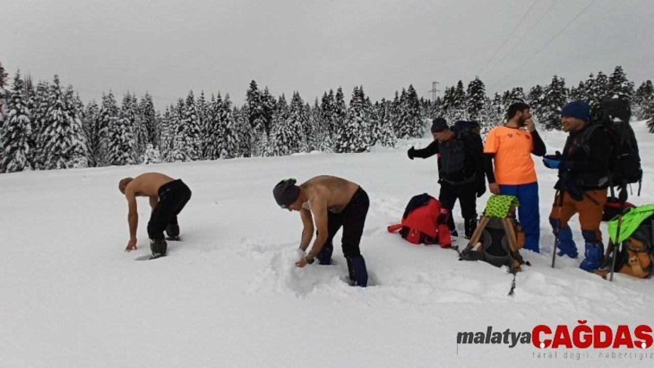 Uludağ'da 1,5 metre karda yürüdüler, kar üstünde güreş tuttular