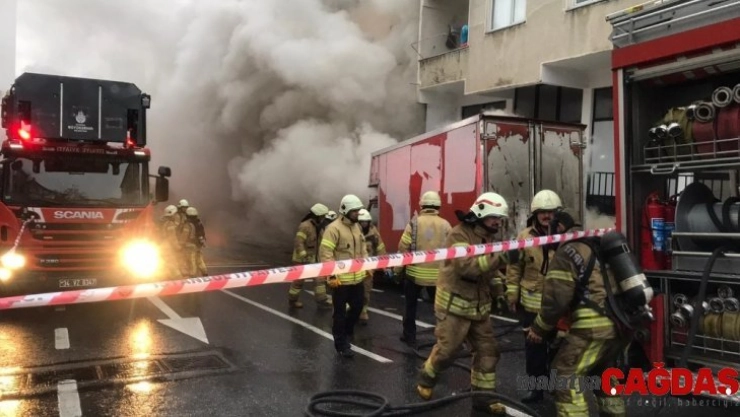 Ümraniye'de yatak imalathanesinde korkutan yangın