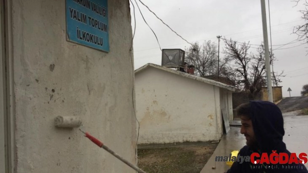 Yıldız Teknik Üniversitesinde eğitim gören bir grup öğrenci, Mardin'in Artuklu ilçesinde bulunan Yalım Toplum İlkokulunda sınıfları boyayıp öğrencilere kırtasiye ve giyim yardımında bulundu.