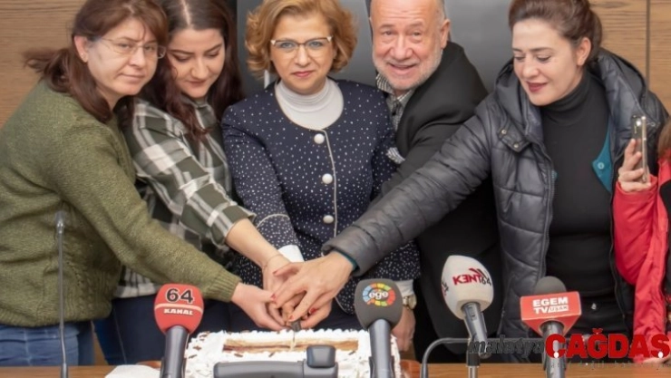 Uşak Organize Sanayi Bölgesi (OSB) Başkanı Halil Ağaoğlu, geçmis ’10 Ocak Çalışan Gazeteciler Günü’ dolayısıyla bir araya geldiği basın mensuplarıyla pasta kesti.