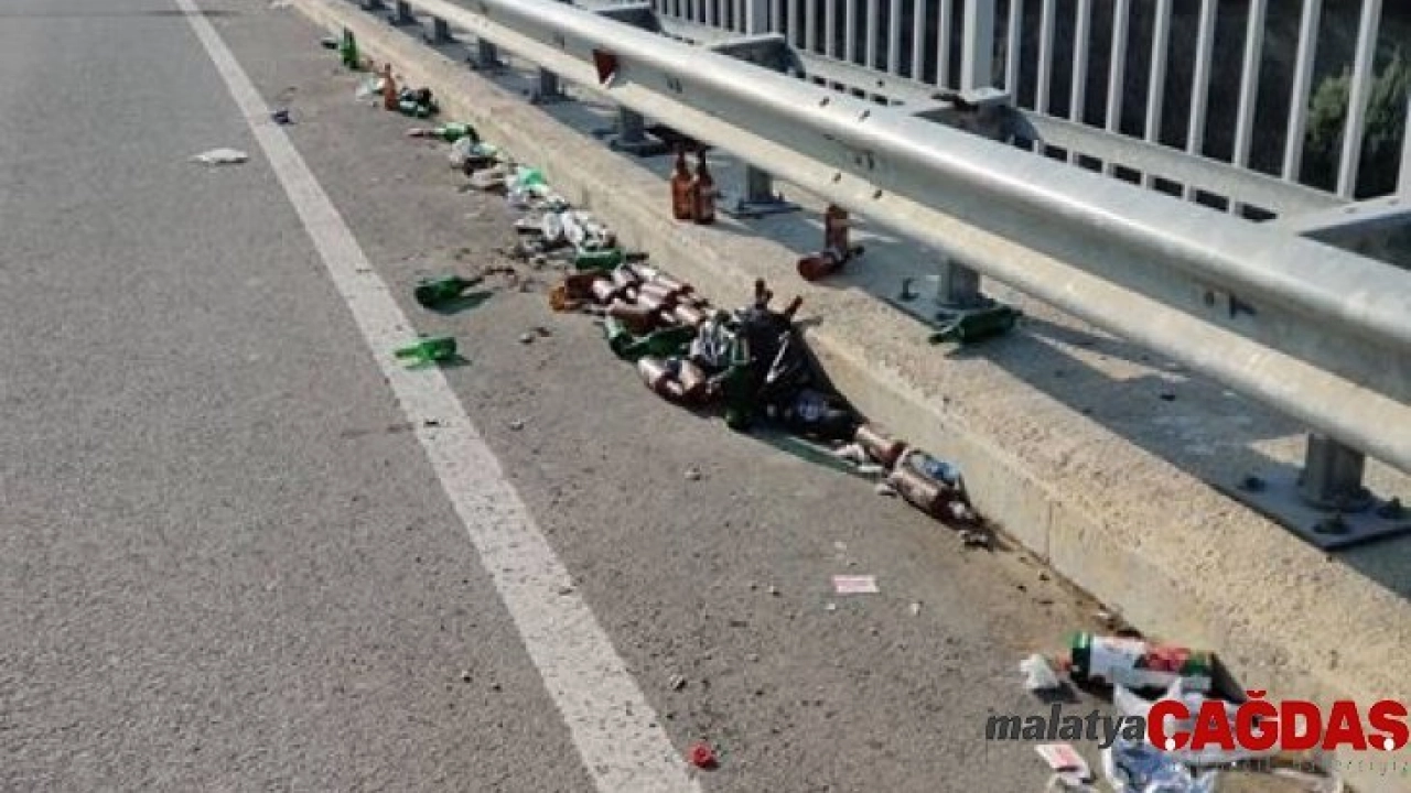 Üst geçit üzerinde alkol alanlar, yoldan geçenleri tedirgin ederken, atıkları ile de çevreyi adeta çöplüğe de dönüştürüyor. Ayrıca sorumsuz kişiler araçlarıyla yoldan gelip geçerken yol kenarlarına ve kamyon tır parklarına poşetin içinde çöplerini çevreye atıyor. Çevre alanlar, pet şişe, poşet, alkollü içeceklerin şişe ve kutularından adeta geçilmiyor.