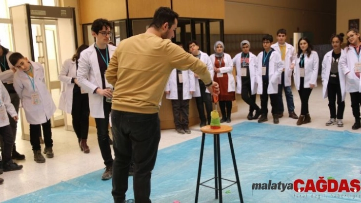 Malatya’da üstün yetenekli öğrenciler, Fen Bilgisi öğrencileri ile birlikte çeşitli deneyler yaptı.