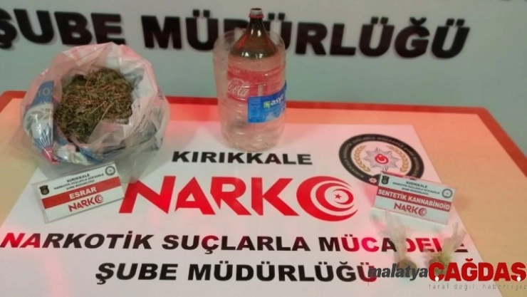 Kırıkkale İl Emniyet Müdürlüğü Narkotik Suçlarla Mücadele Şubesi ekiplerince uyuşturucu madde ticareti yapan şahıslar üzerinde yapılan fiziki takip sırasında B.P. isimli şahıs, T.Y. isimli şahsa 2.34 gram uyuşturucu satarken suçüstü yakalandı. Şahıslar gözaltına alınan şahısların ikametlerinde arama yapan polis, satışa hazır 2 adet şeffaf poşet içerisinde toplam ağırlığı 13.5 gram gelen sentetik kannabinoid maddesi ile çatı katında da zulalı halde 550 gram esrar maddesi, ayrıca uyuşturucu içiminde kullanılan ’kova’ tabir edilen düzenek ele geçirildi. Emniyete götürülen T.Y. isimli şahıs ’uyuşturucu madde kullanmak ve bulundurmak’ suçundan işlem yapılırken şahıs savcılık tarafından serbest bırakıldı.