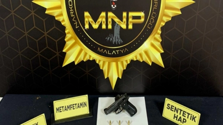 Operasyonda, bir miktar sentetik uyuşturucu, 2 ruhsatsız ve 1 kurusıkı tabanca, 1 tüfek ve 57 fişek ile uyuşturucu ticaretinden elde edildiği değerlendirilen 2 bin 260 lira bulundu.