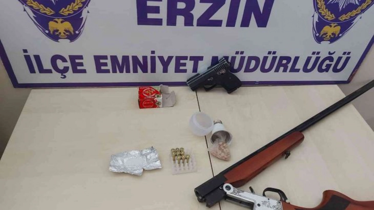 Edinilen bilgiye göre, Hatay Emniyet Müdürlüğü görevlilerince uyuşturucu, uyarıcı madde imal ve ticaretine yönelik yapılan çalışmalar kapsamında Erzin Emniyet Müdürlüğü ekiplerince Şükrüpaşa mahallesinde İ.A.’ya ait iş yeri ve ikamette yapılan aramada; 1 adet tabanca, 1 adet av tüfeği, 9 adet tabanca fişeği, 59 adet captagon hap ele geçirildi.