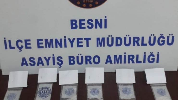 Edinilen bilgilere göre, Narkotik Suçlarla Mücadele Şube Müdürlüğü ekipleri ile Besni ilçe Emniyet Müdürlüğünün yapmış oldukları denetimler kapsamında durumlarından şüphelenilerek durdurulan araçta arama yapıldı. N.A., A.P., B.Ö., B.Z, A.Ö., O.Y. ve R.S., isimli kişilerin içerisinde bulunduğu araçtan 10 paket halinde alüminyum folyo sarılı toplam 7,33 gram metamfetamin, üç paket halinde ise, toplam 7,05 gram sentetik kannabinoid maddesi ele geçirildi. Uyuşturucu maddeleri muhafaza altına alınırken şahıslardan N.A., ile R.S., isimli 2 şahıs gözaltına alındı. Emniyette ifadeleri tamamlanan N.A., ile R.S., adliyeye sevk edildi. Şahıslardan N.A., çıkarıldığı mahkemece tutuklanarak cezaevine gönderildi. Öte yandan polis ekipleri A.P., B.Ö., B.Z, A.Ö., ve O.Y., isimli şahıslara içmek için uyuşturucu madde bulundurmaktan haklarında yasal işlem gerçekleştirdi.