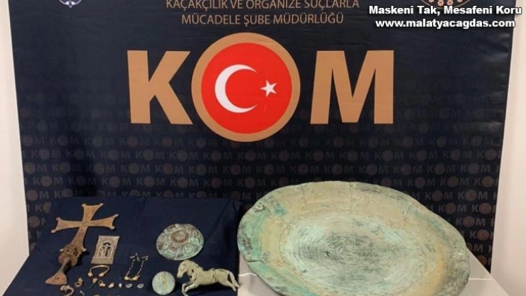 Sivas’ta bir kaçakçı Roma dönemine ait 22 parça tarihi eserle yakalandı.