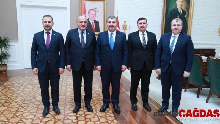 Çeşitli temaslarda bulunmak üzere Ankara’ya giden Erzincan Valisi Ali Arslantaş, beraberindeki Erzincan Milletvekilleri Süleyman Karaman ile Burhan Çakır ile Sağlık Bakanı Dr. Fahrettin Koca ile Emniyet Genel Müdürü Mehmet Aktaş’ı makamında ziyaret etti. Ziyaretleri kapsamında ilk olarak Sağlık Bakanlığı’nı ziyaret eden Vali Ali Arslantaş ve Erzincan Milletvekilleri Süleyman Karaman ile Burhan Çakır, Sağlık Bakanı Dr. Fahrettin Koca ile yaptıkları görüşmede, “Erzincan’da hasta ve hasta yakınlarının ihtiyaç ve beklentileri göz önünde bulundurulduğunun hasta bakımı ve yönetim standartlarında sürekli iyileşmeyi sağlamak üzere hastalara saygın, temiz, güvenilir bir ortamda yüksek kalitede hizmet vermek amacıyla inşa edilen 250 yataklı Erzincan Binali Yıldırım Üniversitesi Mengücek Gazi Eğitim ve Araştırma Hastanesi’ne ait ek hizmet binasını, Erzincan’ın düşman işgalinden kurtuluşunun 102’nci yıldönümü olan 13 Şubat 2020 tarihinde hizmete açacakları bilgilerini aktardılar.