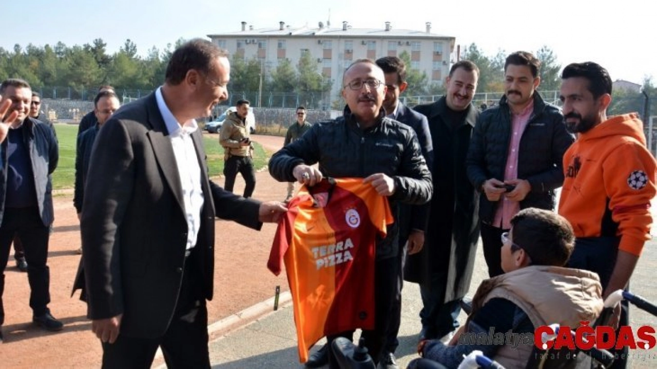 Siirt Valisi Ali Fuat Atik, Siirt İl Özel İdare Spor-Muş Menderes Spor karşılaşması öncesi iki engelli genci ziyaret ederek kendilerine akülü sandalye ve Galatasaray Spor Kulübü’nden temin edilen Falcao imzalı forma hediye etti.